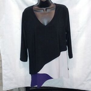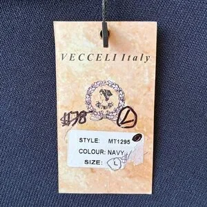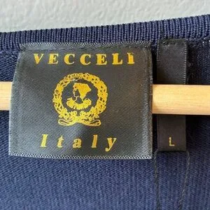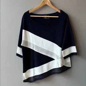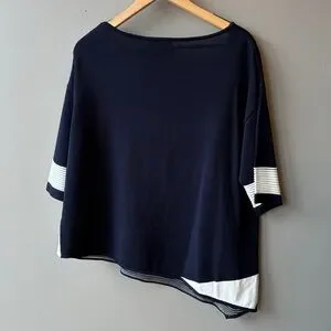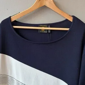 New With Tags Vecceli Italy Navy White Asymmetrical Boat Neck Top, Size Large Short Sleeve