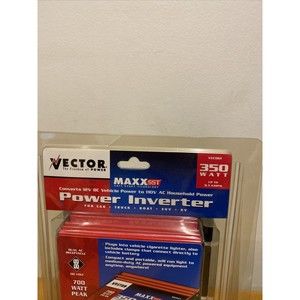 This brand new Vector 350 Watt power inverter is perfect for use in your car, boat, or RV. With a peak power of 700 watts, it can handle your electronic needs on the go. Equipped with short circuit protection, an on/off switch, and DC/AC capability, it's a versatile and reliable choice. The inverter has a 12V input voltage and a 120V output voltage, making it compatible with a range of devices. Additionally, it's a modified sine wave inverter, ensuring smooth and efficient power delivery. Made in China, this Vector inverter is a top-performing accessory for any electronic enthusiast. Un-tested and sold as-is. No guarantee that this will work. Package has been in storage and the plastic packaging on dented , cracked and split.