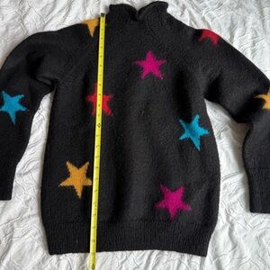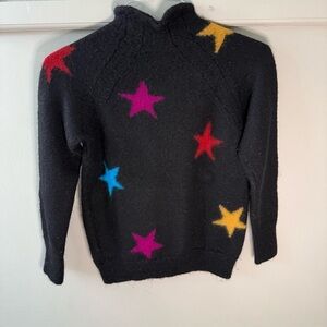Veda Black Knit Turtleneck Sweater with Vibrant Stars Blue Yellow Red Pink