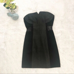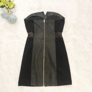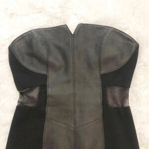 Veda | Black Leather Mesh Cutout Dress (Strapless)