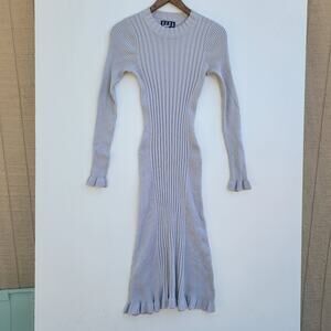 Features: Gray knit (60% Cotton, 30% Nylon, 10% Wool). Sheath. Long sleeves. Crew neck.
