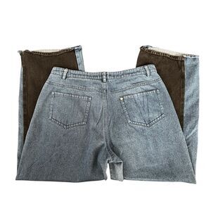 Veda New Eclipse Colorblock High Rise Wide Leg Two Tone Jeans Black Blue 10