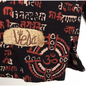 Veda Tunic Top Waffle Knit Long Sleeve Black Red Cream Graphic Print Size Large