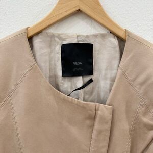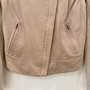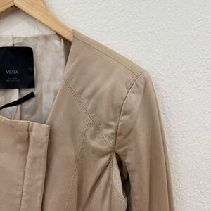 Veda Women's Medium Cream Tan Silk Genuine Leather Hi Low Hem Moto Jacket Coat