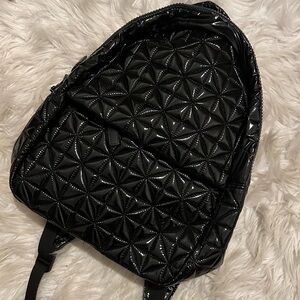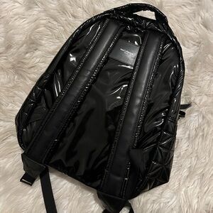 Vee Collective Backpack in black vinyl. Perfect size! Brand new with tags. Inside containers multiple compartments and inside zip, along with additional black vinyl pouch. Black interior and black hardware.
