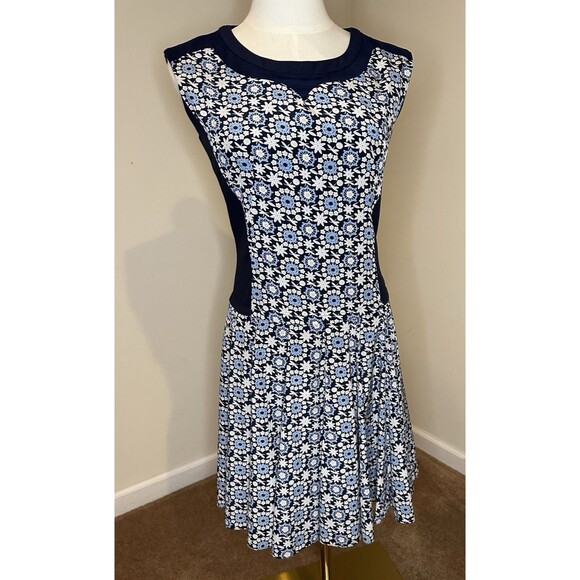 Veeko DaisyFloral Fit & Flare Dress NavyBlueWhite Retro Print Sleeveless Size 34
