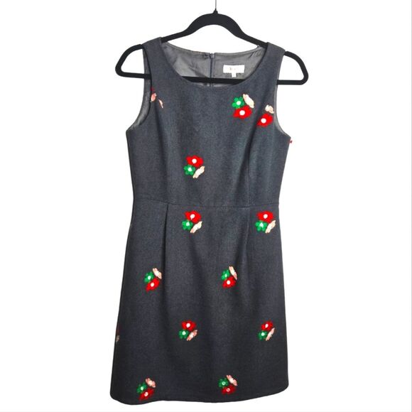Veeko Embroidered Floral Wool Blend Sleeveless Dress A Line Mini Size US 4 | 34