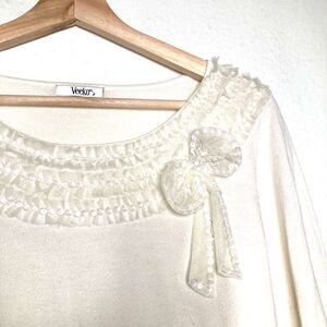 Veeko Womens Top White 3/4 Sleeve Scoop Neck Bow Embellished Sequins Party M