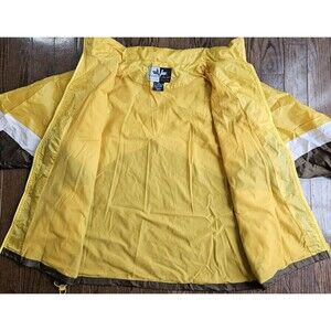 See photos for condition and more information. Has a convertible hood. Notice the very small stain spots on the inner collar. I didn't wash this so not sure if it will come out or not.
