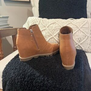 Wedge booties in Cognac brown color. Like new, only worn once. 3.5 inch heel. Zipper closure inside ankle side.