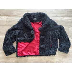 Vegan Faux Fur Teddy Bear Shearling Women's Jacket Black XL Satin Lined