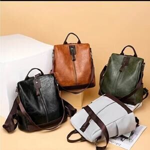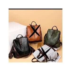 Vegan Leather Backpack One Shoulder Messenger Anti Theft Waterproof Travel