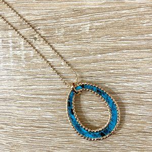 New with tags Vegan Leather Blue Snakeskin Gold Bead Chain Pendant Necklace