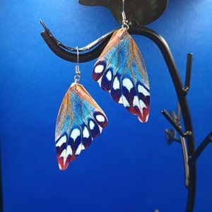 Vegan Leather Blue/Orange Butterfly Wing Earrings.