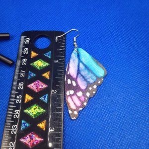 Vegan Leather Blue/Pink Butterfly Wing Earrings.