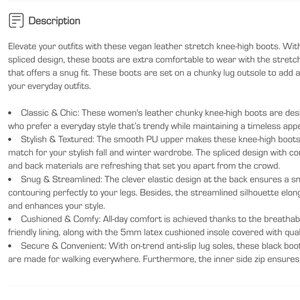Vegan Leather Boot Chunky Stretch Knee High Tall Stretch Boots Black Size 8.5