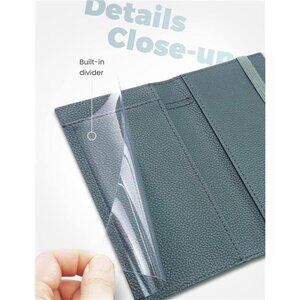 🧿A pen holder is sewn in the interior so you can always have a pen to sign with, and a clear plastic divider is included so that when you write a check, the pressure of the pen does not damage the carbon copies of subsequent checks. Elastic band to keep all your materials safe.