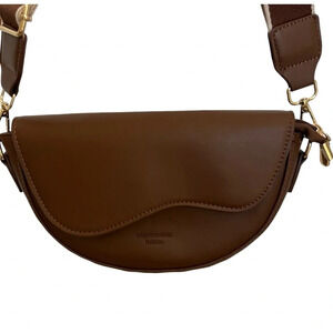 Vegan Leather Crescent Shoulder handbag with Adjustable Guitar Strap Brown