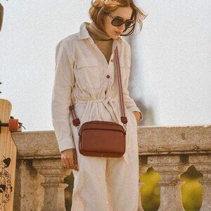 Vegan Leather Crossbody Bag Small Compact Zipper Organizer for Women