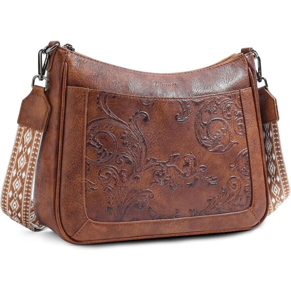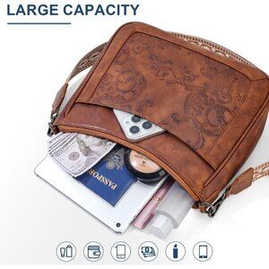 Vegan Leather Crossbody Bag with Embossed Flower Design Large Capacity Stylish
