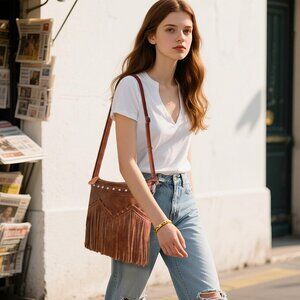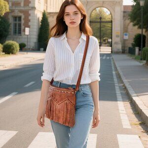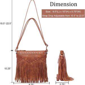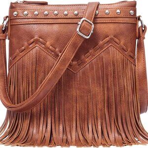 Vegan Leather Crossbody Bag with Rivets Tassel Purse — Stylish and practical for everyday fun.