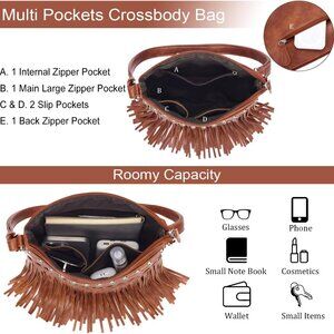 Features: This cute, medium-sized crossbody features a soft yet durable synthetic leather with eye-catching silver hardware and a trendy tassel. It’s got a spacious main compartment plus multiple pockets, perfect for carrying your phone, wallet, cosmetics, and even an iPad mini. Adjustable strap lets you find just the right fit, making it comfy whether you’re out shopping, at a concert, or on the go.