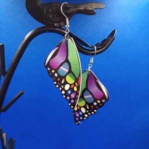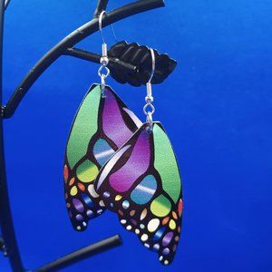 Vegan Leather Green/Purple Butterfly Wing Earrings.