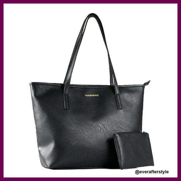 Vegan Leather Tote Bag Classic Elegant Minimal Chic Spacious Top Handle Shoulder