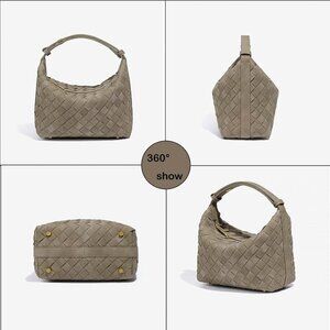 Features: Beautifully hand-woven vegan leather tote blending sophisticated style with a classic vibe. Soft, durable, and wrinkle-resistant nubuck leather with a dual-strand weaving design. Includes a zippered interior pocket and an extra pocket for your phone, wallet, iPad Mini, or cosmetics. Versatile carrying options with an adjustable shoulder strap, perfect as a crossbody, top-handle, or underarm purse. Elegant, textured look that matches everything.