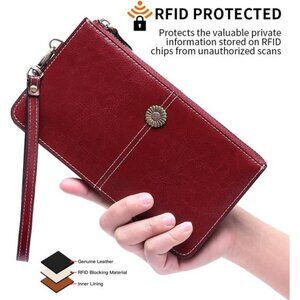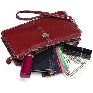 Made of high-quality oil wax leather, these wristlets for women are polished on a leather surface and creates a rich appearance and bright color, equipped metal zipper runs smoothly for keeping safe for your personal things.