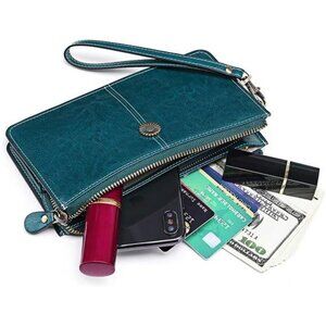 Made of high-quality oil wax leather, these wristlets for women are polished on a leather surface and creates a rich appearance and bright color, equipped metal zipper runs smoothly for keeping safe for your personal things.