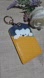 Adorable vegan leather yellow, blue and white peeking bear keychain, card & ID badge holder.