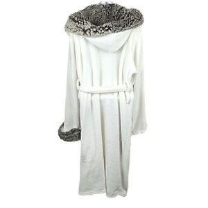 Vegan Pottery Barn Spa Comfy Faux Fur Wrap Around Tie Fleece Robe w Hood, Sz. L