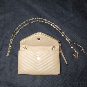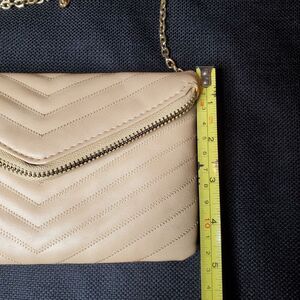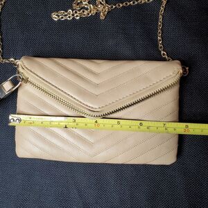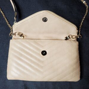 Vegan Quilted Beige Leather Crossbody Purse Clutch Gold Chain Urban Expressions