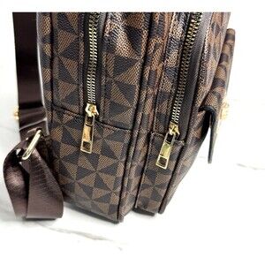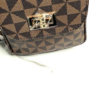 Vegan Sling Backpack Crossbody Geometric Pattern Lead-Free Shoulder Bag in Brown
