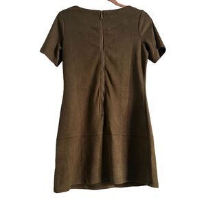 Vegan Suede Fit and Flare Dress Olive Green Neutral Size Small
