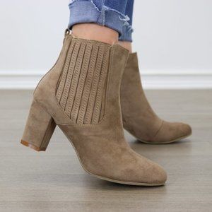 Vegan Suede Taupe Block Heel Ankle Bootie