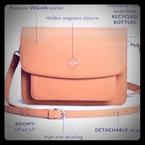 This timeless purse is both form and function, with pockets for days, high-end metallic detailing, a magnetic button closure on the fold-over flap, and a detachable strap. It's made of premium vegan leather and features an inner lining created with recycled bottles.