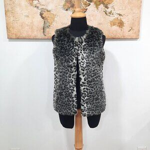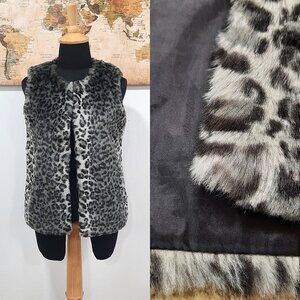 Super soft and cuddly faux fur grayscale leopard print vest.