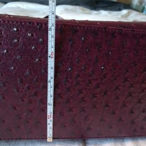 Beautiful new without tags Italian purse. Wine color, long handles to wear it over the shoulder. This vegan leather imitates animal skin that you can really appreciate in the close-up pic. It has some good accents and overall this purse gives you a professional and stylish look. Used only once for an event. Keept in an smoke free, pet free home.