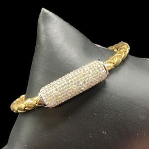 • Style Profile: Gold, Silver, Metallic, Woven, Faux Leather, Cubic Zirconia, Set of 2, Magnetic Closure.