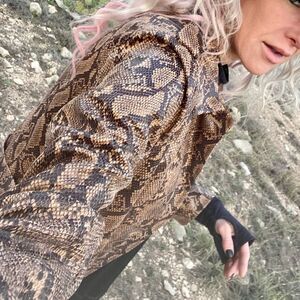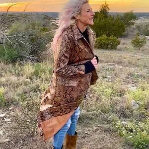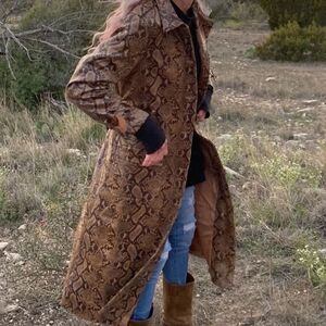 Obsessed is an UNDERSTATEMENT! This thing is SUUPER FLY!!! Crazy Buttery Soft! Full Length Snakeskin / Python / Animal Print Vegan Leather Trench Coat!! Full Lapel Collar / Button Down / with Belt Closure!