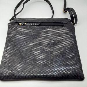Vegan Snakeskin Embossed Adjustable Strap Black Shoulder Bag Like New