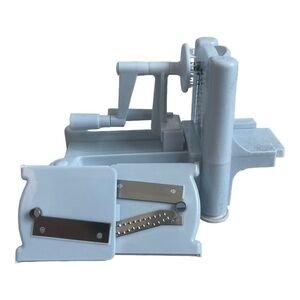 Equipped with three blades, it offers endless cutting options: create thin spirals or shreds, thick spirals, or delicate ribbon slices with ease. This pre-loved slicer is in good condition, ensuring reliable performance for your culinary creations.