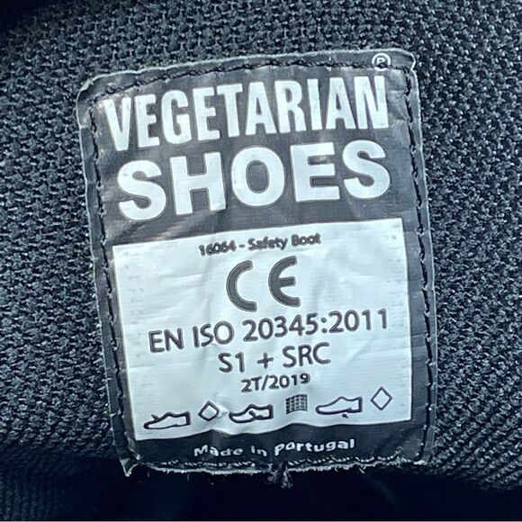 Vegetarian Shoes Steel-Toe Safety Work Boots Size 13 US 47 EUR Model 16064. Brand new never worn. Has some factory wear around the inside of the left ankle on the top as pictured.