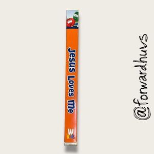 The lyrics to the classic song "Jesus Loves Me," along with newly written verses, are paired with bright illustrations and a cast of familiar characters.