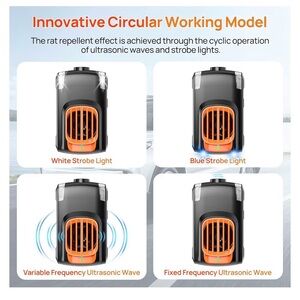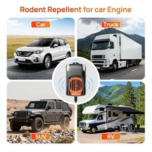 Brand new vehicle rodent control device designed for use in cars, garages, RVs, and storage areas. Features built-in LED lights and a simple on/off switch in a compact design. Non-medical electronic accessory. No chemicals, no personal use components.