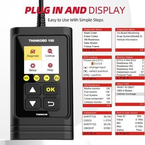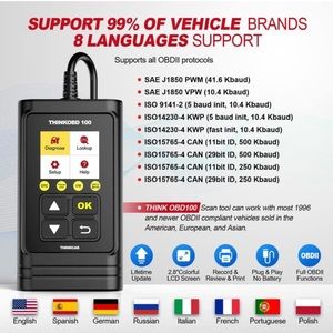 THINKOBD 100 Is an obd2 full-function scan tool, that supports over 20000+ car models, and is a basic but useful obd2 scanner! It all works on MOST of 1996 US-Based, 2000 EU-Based, and Asian cars, check engine lights, I/M monitor readiness test, view live data, view freeze frame data, and read and clear codes. view vehicle info. features full 10 modes of OBD2 functions,