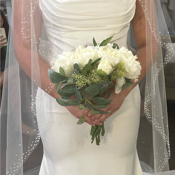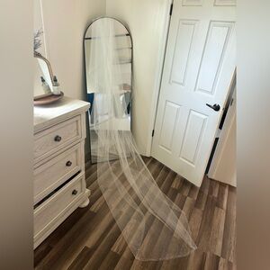 Justin Alexander Cathedral Veil, never worn, only tried on. White, pearl lining. Absolutely beautiful. In perfect condition, no rips or tear!