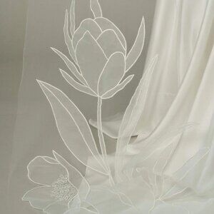 Fabulous floral illustration made by artist Alli Koch beautifully embroidered with organza in a soft wedding veil.